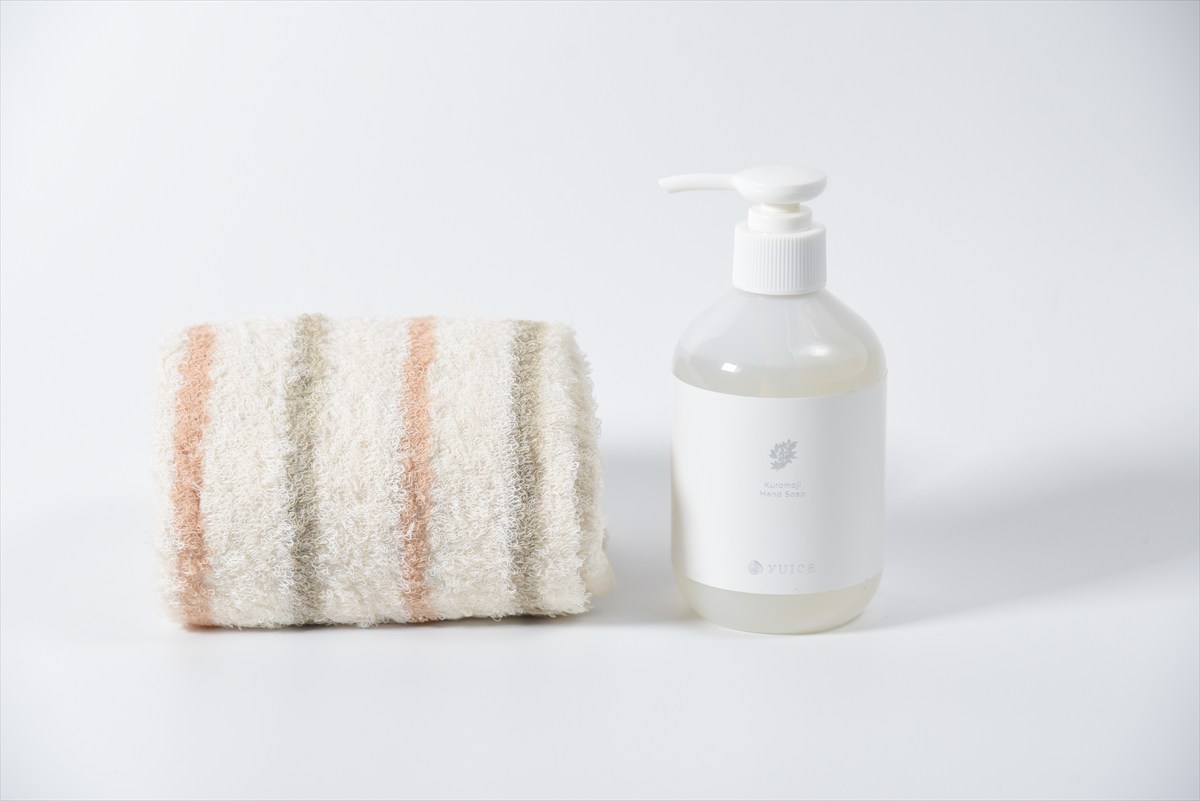 天然香料100%のクロモジ精油を配合したハンドソープは、手を洗うたびに 爽やかでほんのり甘いクロモジの香りがただよい、気持ちをやすらげてくれます。 さらに国産の植物由来成分を用いた処方で、手肌の潤いも保ちます。 そんな「黒文字ハンドソープ」と、柔らかな布地のハンドタオルをセットにしました。 忙しい毎日の中ので、日常のちょっとした習慣が大切な人の癒しとなりますように。