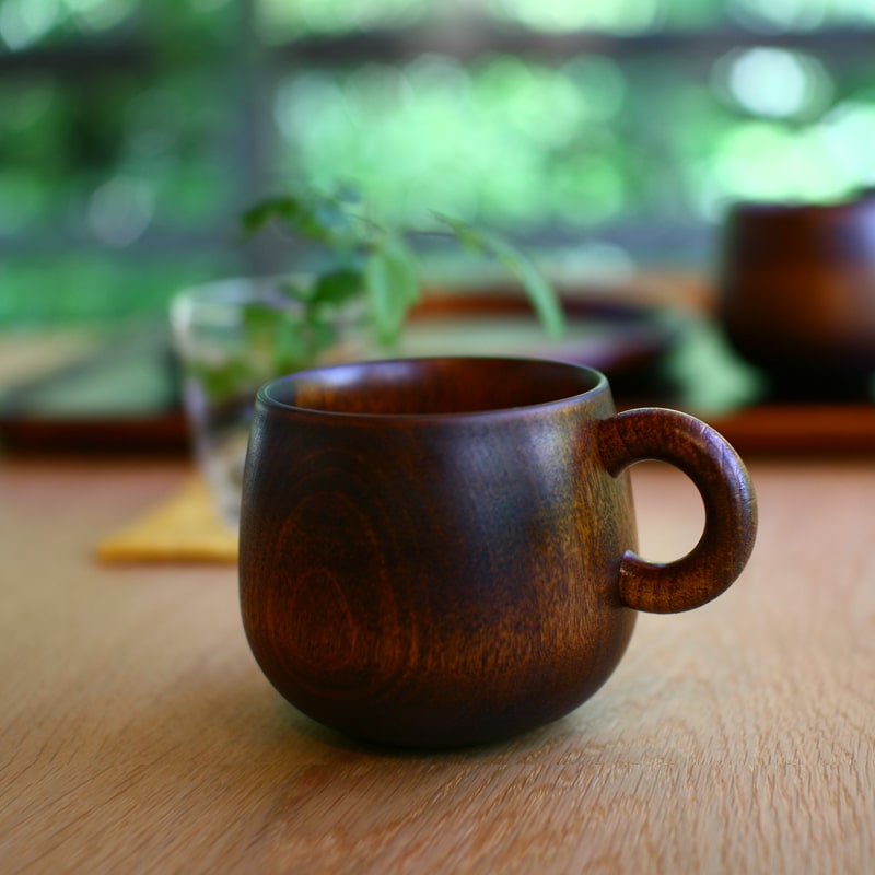木塊から削り出したので丈夫で軽く、手に持っても熱くなりにくく温かい飲み物が冷めにくいという漆器ならではの保温性もあります。