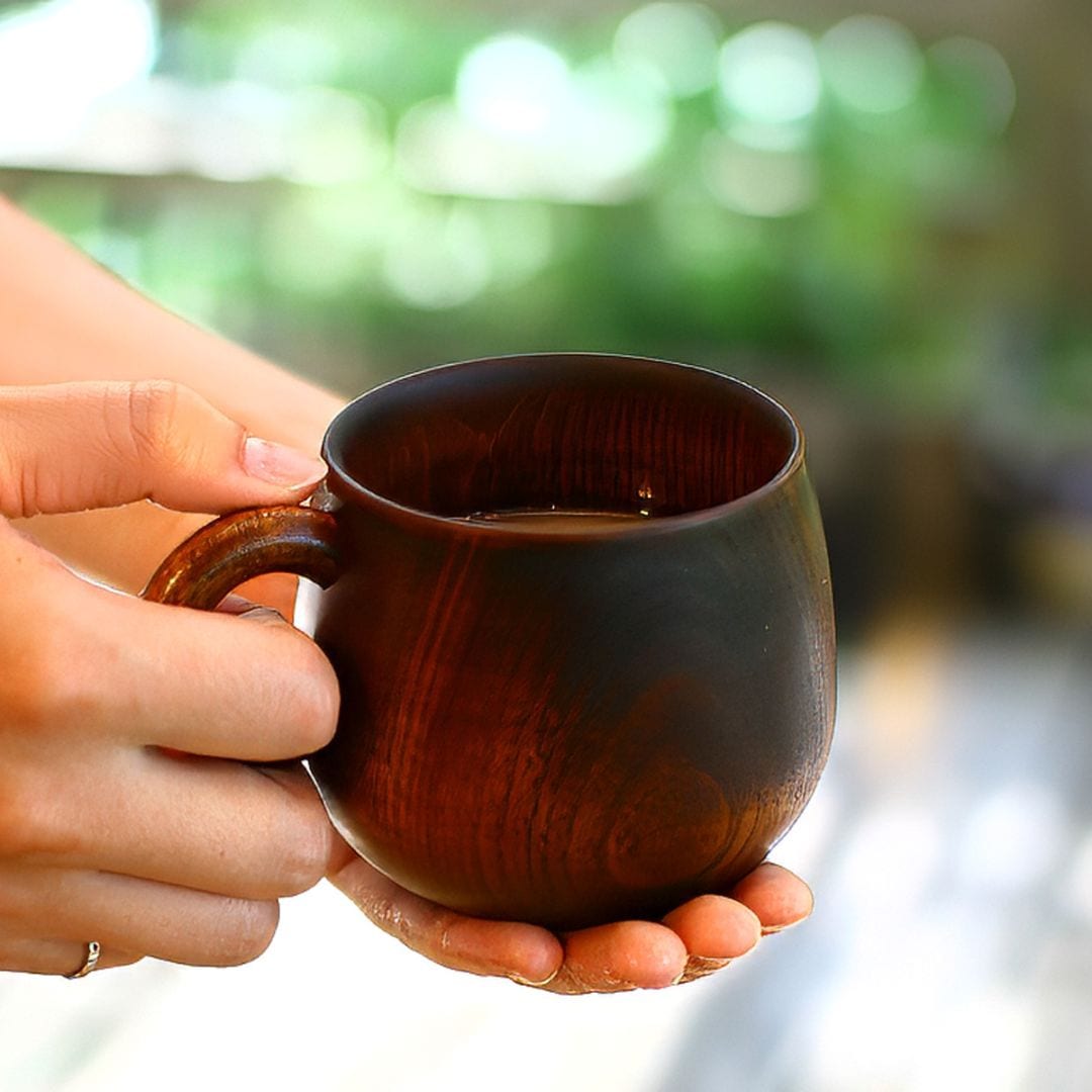 なめらかな木肌に波紋のようにまあるく広がる木目、陶磁器にはないあたたかな手ざわり、そして優しく愛らしいかたちにこだわってつくられたマグカップです。