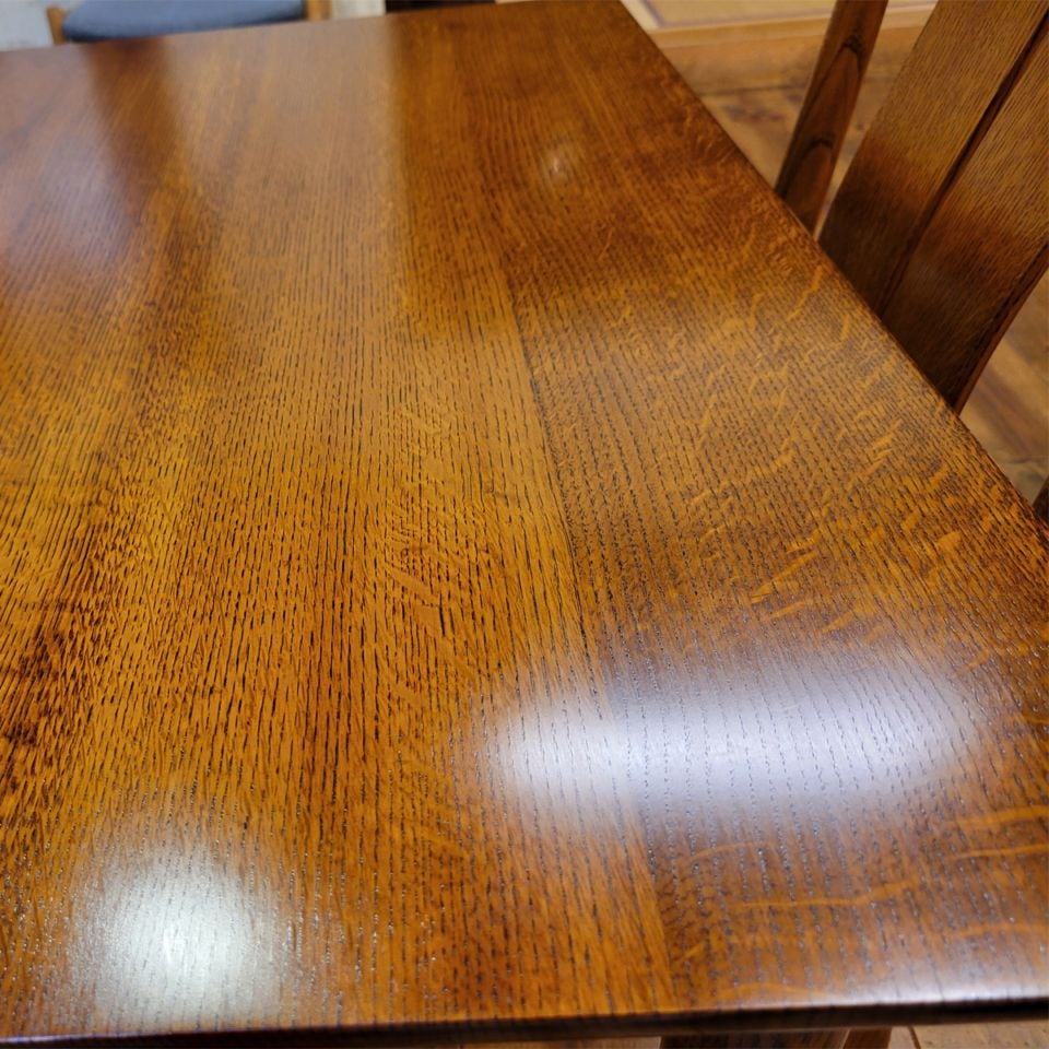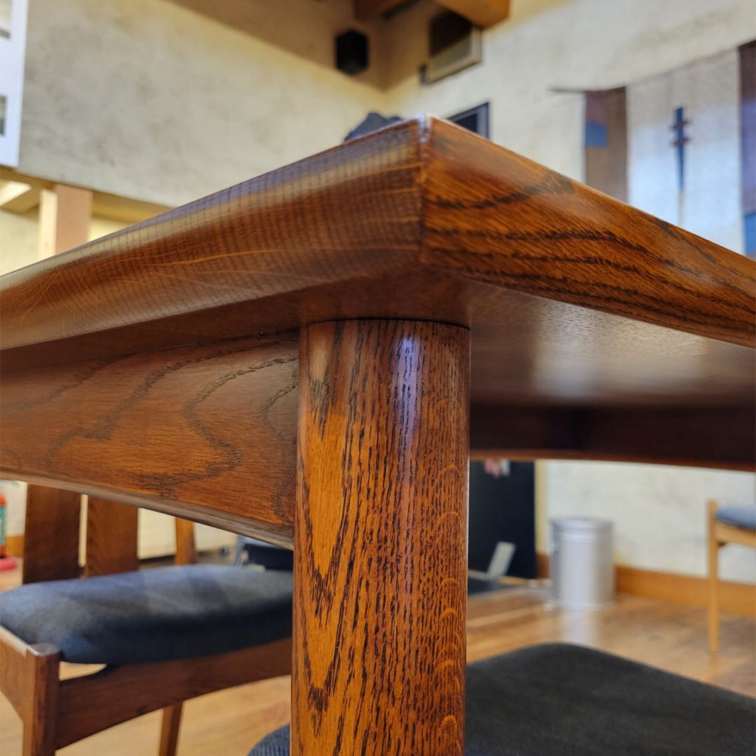 オークヴィレッジのテーブルは、無垢材の特性を見極め、テーブルの天板に「蟻桟(ありざん)」という伝統工法を用いているため、脚の位置等に構造上の制限があります。